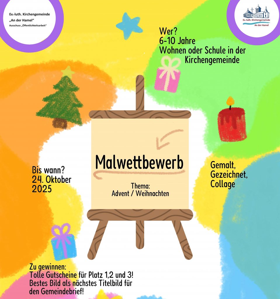 Zum Thema „Advent / Weihnachten“ hat die Kirchengemeinde „An der Hamel“ einen Malwettbewerb für Kinder ausgeschrieben. Es gibt tolle Gutscheine zu gewinnen!