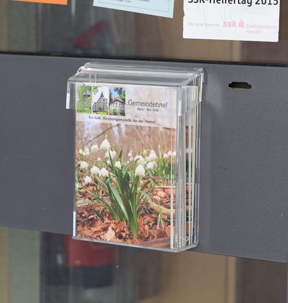 Frei und jederzeit zugänglich können ab sofort aus einer wetterfesten Box bei Interesse unsere Gemeindebriefe entnommen werden. Die abgebildete Box befindet sich an der Eingangstür der Kita „Paul Gerhardt“ am Basberg.